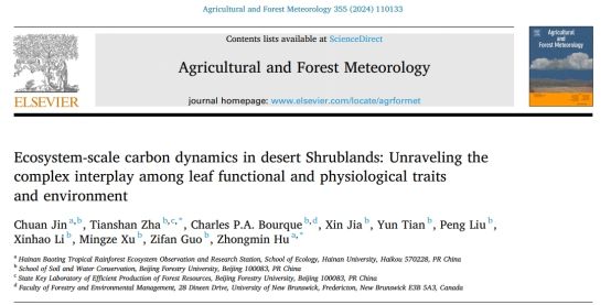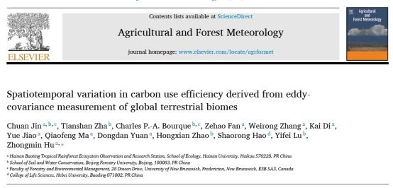 “生态服务功能监测与评估”团队成员靳川博士联合北京林业大学、新布伦瑞克大学(加拿大)、西北农林科技大学、海南省生态环境监测中心等单位共同合作,在生态碳水循环领域取得一定研究进展,在生态领域著名期刊接连发表多篇学术论文。论文的第一作者为青年教师靳川博士,通讯作者为胡中民教授,第一单位为私密直播