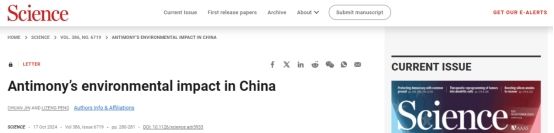近日,私密直播 生态服务功能监测与评估团队成员靳川博士联合山东省农业科学院彭立增研究员,在《Science》上发表题为“Antimonys environmental impact in China”的Letter评述文章。靳川博士为该文第一作者,彭立增研究员为共一/通讯作者。该文章探讨了中国锑(Sb)污染的现状及其对生态环境和人类健康的威胁,并呼吁通过在环境介质、生物体中进行广泛的数据收集,优先开发生物传感器并结合生物修复技术来控制这一重金属污染,为化学环境污染管理提供了宝贵的见解和策略。
