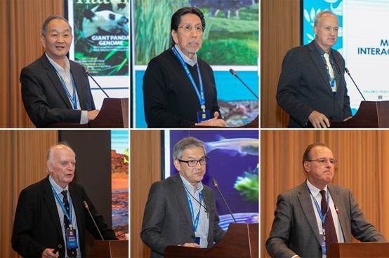 上图左起:陈宜瑜、何巍、刘晓勘;下图左起:Yvon Le Maho、Viatcheslav Rozhnov、Marcel Holyoak