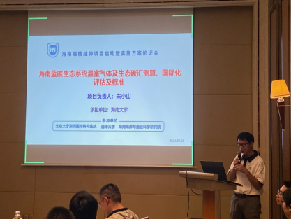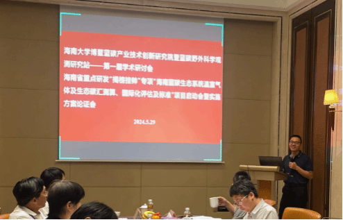 主持的海南省揭榜挂帅项目“海南蓝碳生态系统温室气体及生态碳汇测算、国际化评估及标准”启动会暨实施方案论证会在海口市国宾馆会议室成功举行。出席本次会议的专家、来宾有福建农林大学的周顺桂副校长(线上)、清华大学林光辉教授、华东师范大学的李秀珍研究员、中国科学院烟台海岸带所的韩广轩研究员、自然资源部第三海洋研究所的陈光程研究员、中国科学院华南植物园的王法明研究员(线上)、浙江大学叶观琼教授(线上);此外,项目主管部门海南省生态环境厅李艳忠副处长、第三方监督员中国环境科学研究院的任月恒老师也出席本次会议;代表学校出席本次会议的有科发院副院长毛伟研究员;私密直播