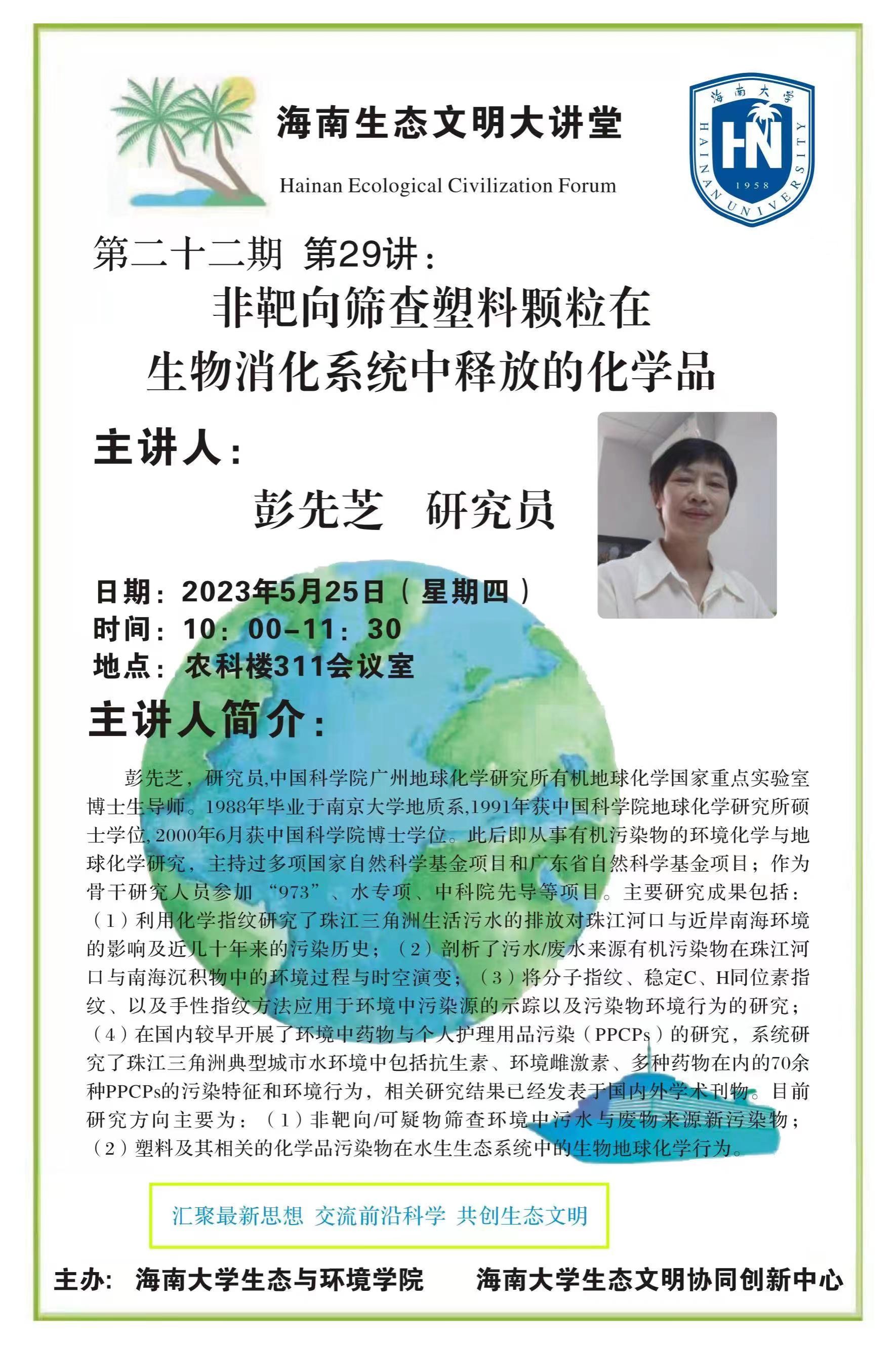 第29讲 彭先芝研究员做客海南生态文明大讲堂